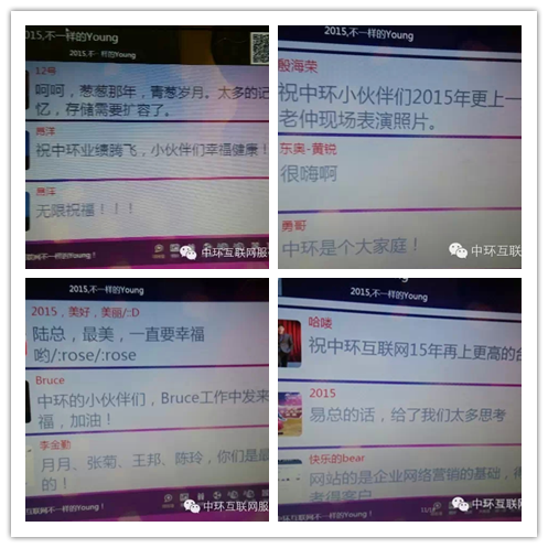今年中環(huán)的年會加入了大量的互聯(lián)網(wǎng)的元素,第一次通過微信端口對外直播了我們的年會場景,同時通過微信墻,現(xiàn)場與觀眾進行互動,許多的客戶都發(fā)來了新年的祝福!