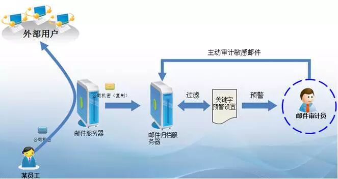 如公司某員工發(fā)現(xiàn)近期部門很多內(nèi)部資料莫名其妙的外泄,可通過郵件審計(jì)員查資料可快速的找出元兇,如圖流程演示: