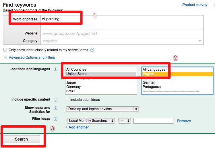 要理解如何利用這些工具來(lái)找潛在的外貿(mào)客戶,首先我們要弄清楚谷歌的關(guān)鍵詞工具到底如何用, 簡(jiǎn)單的來(lái)說(shuō)你只需要在Google Keyword Tool中輸入一個(gè)關(guān)鍵詞,那么系統(tǒng)會(huì)自動(dòng)列出眾多的相關(guān)和相似的關(guān)鍵詞,而這些關(guān)鍵詞都是實(shí)實(shí)在在有用戶搜索過(guò)的,也就是說(shuō)是用戶的語(yǔ)言。有好幾個(gè)人在我博客留言說(shuō)是做油畫(huà)的,那我就用油畫(huà)來(lái)做這次的案例,首先我們?cè)陉P(guān)鍵詞工具中輸入油畫(huà) ‘Oil Painting‘ ,這是所有做油畫(huà)人的商人能想到的第一個(gè)關(guān)鍵詞。