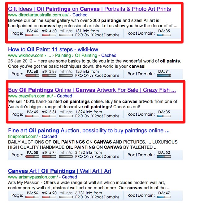 一眼掃過(guò)去,很明顯紅框中的兩家油畫(huà)商城域名都是.com.au 也就是澳洲的網(wǎng)站。點(diǎn)進(jìn)去一看,如果你是做油畫(huà)的,一眼就能看出他的產(chǎn)品肯定是從中國(guó)進(jìn)的,這代表什么?很簡(jiǎn)單,你可以把他變成你的客戶。油畫(huà)這行,如果你想賣(mài)給海外的畫(huà)廊,那希望很渺小,但如果你想賣(mài)給這種生意人,還是很簡(jiǎn)單的。
