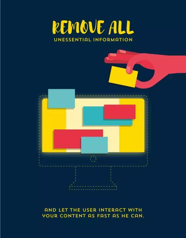 你要學會移除非必須的信息,讓用戶可以盡可能快地同你的網(wǎng)頁內(nèi)容進行交互。