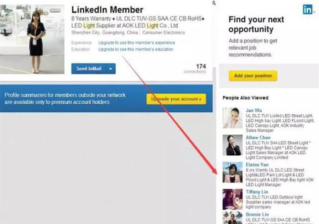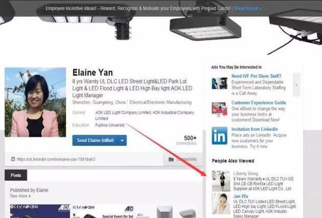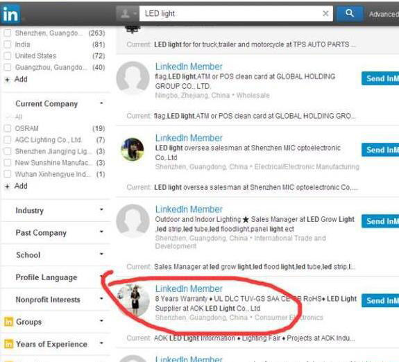 如果你的目標(biāo)客戶是領(lǐng)英會員,怎么要如何深挖他的個人信息來加他為好友呢?我們以LED light為例: