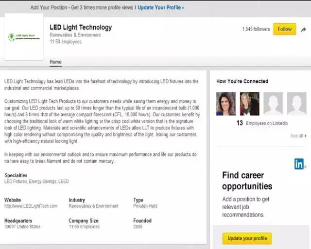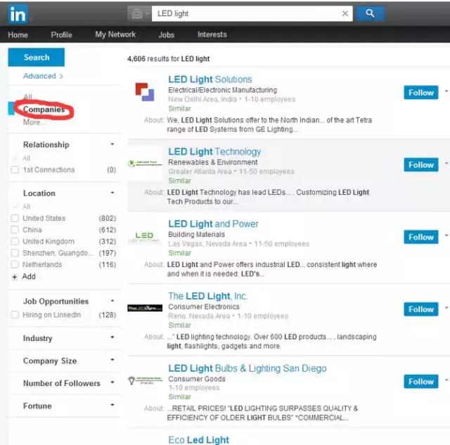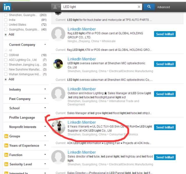 如果你的目標(biāo)客戶是領(lǐng)英會(huì)員,怎么要如何深挖他的個(gè)人信息來加他為好友呢?我們以LED light為例: