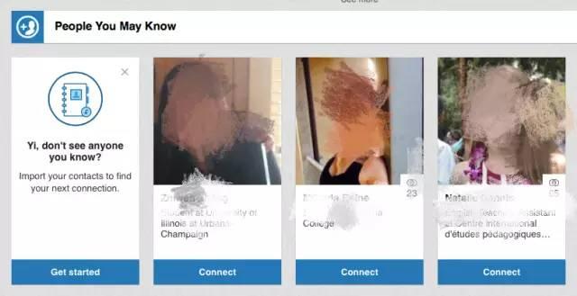 就是這些頭像底部的藍(lán)色按鈕,原諒我手抖的馬賽克...如果你進(jìn)入了某人的檔案之后想要和他們成為connection,則可以通過點(diǎn)擊“connect”按鈕,進(jìn)入到下面這個(gè)頁(yè)面。.