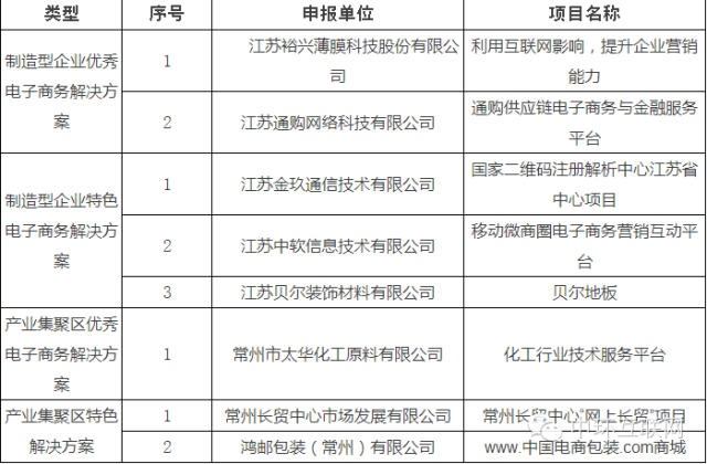 2014/09/26| 閱讀次數(shù):658 為貫徹落實(shí)市政府《常州市傳統(tǒng)優(yōu)勢產(chǎn)業(yè)轉(zhuǎn)型升級(jí)“雙百”行動(dòng)計(jì)劃(2013-2015年)》(常政辦法【2013】171號(hào))精神,確保完成“雙百”行動(dòng)計(jì)劃的電商目標(biāo),促進(jìn)傳統(tǒng)產(chǎn)業(yè)轉(zhuǎn)型升級(jí),樹立企業(yè)開展電子商務(wù)應(yīng)用典范和標(biāo)桿,經(jīng)企業(yè)申報(bào)、轄市區(qū)推薦、專家評(píng)審等程序,評(píng)選出制造型企業(yè)優(yōu)秀電子商務(wù)解決方案2家、制造型企業(yè)特色電子商務(wù)解決方案3家、產(chǎn)業(yè)集聚區(qū)優(yōu)秀電子商務(wù)解決方案1家、產(chǎn)業(yè)集聚區(qū)特色解決方案2家,現(xiàn)予公示。