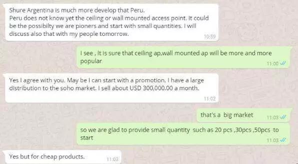 雖然跟進(jìn)了幾個(gè)月,但是跟這個(gè)客戶之間來往的郵件并不多,大部分都是在whatsapp上溝通的,不得不說這是一個(gè)好東西啊。由于時(shí)差的原因,每次都是我這邊大清早,他那邊晚上的時(shí)候才能溝通一下,時(shí)間很短,偶爾遇到他熬夜,就能多聊一下,但是沒有實(shí)質(zhì)性的進(jìn)展。