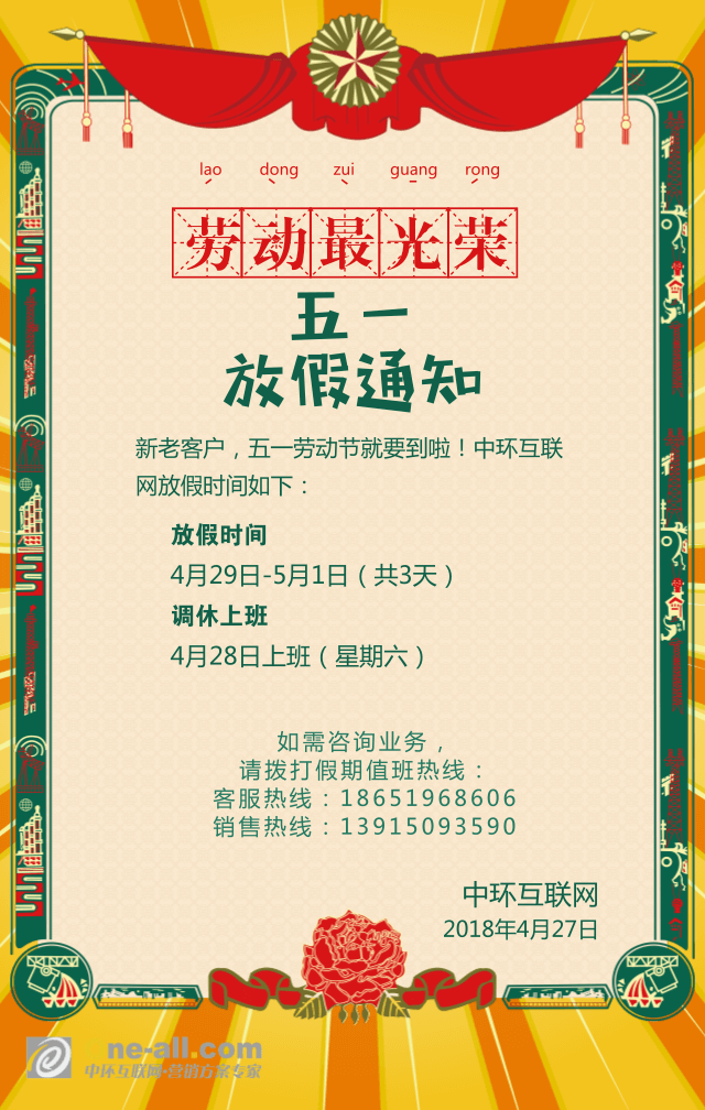 中環(huán)互聯(lián)網(wǎng)五一放假通知